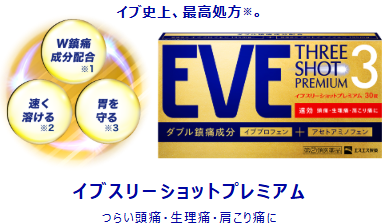일본의 대표적인 진통제 이브 진통제의 효과는 체내에서 발생할 수 있는 대부분의 통증을 완화시켜 주는 효과가 있습니다. 대표적으로 생리통, 두통 완화효과가 있으며 이외에도 치통, 인후통, 요통, 어깨통증등 다양한 통증을 완화 시켜줍니다.